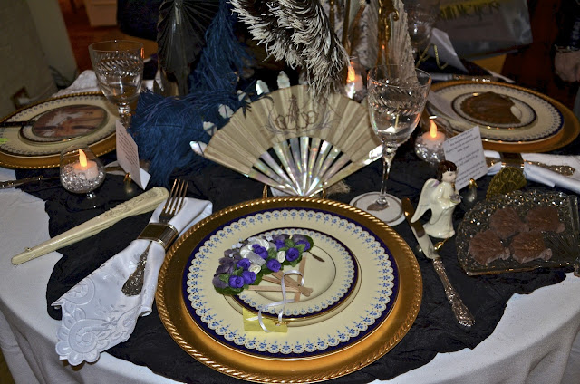 This was one of my favorite tablescapes. The woman evidently has an amazing collection of antique fans. The Minton, "Consort" china is on my "I shall have this in my collection someday." list.