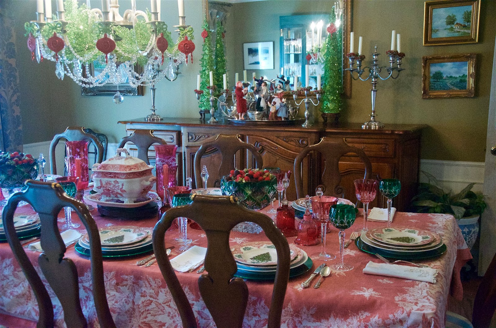 The tree is trimmed, and the table is decked in a wonderful plaid taffeta tablecloth, an eBay find.